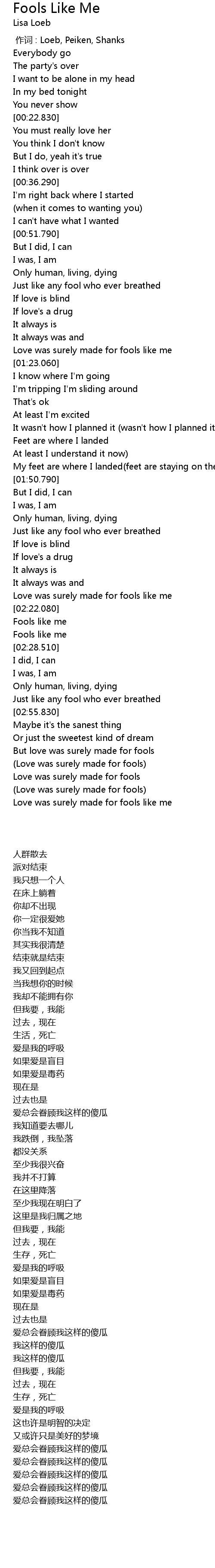 | [03:19.060] | (Love was surely made for fools) |