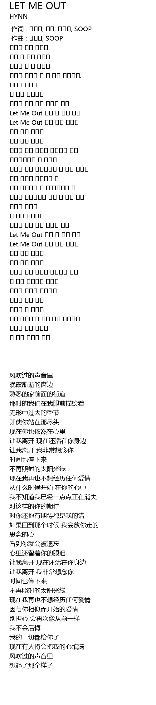 Let Me Out 네가 너무 그리워 |