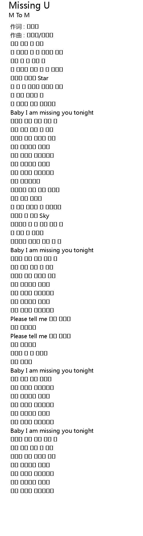 | [02:28.923] | Baby I am missing you tonight |
