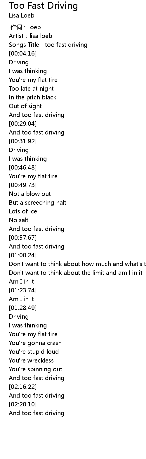 | [00:55.36] | And too fast driving |