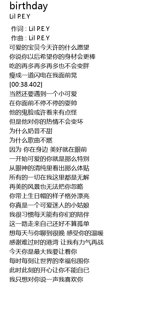 | [00:00.000] | zuò cí : Lil P. E. Y |