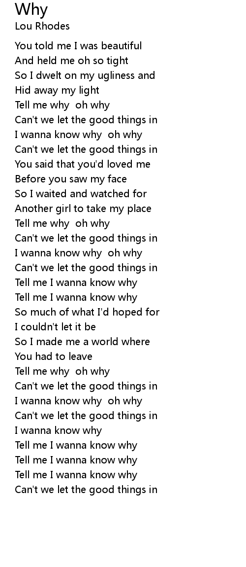 I wanna know why oh why |