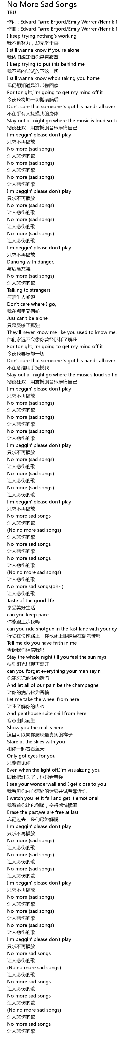 | No more (sad songs) | |