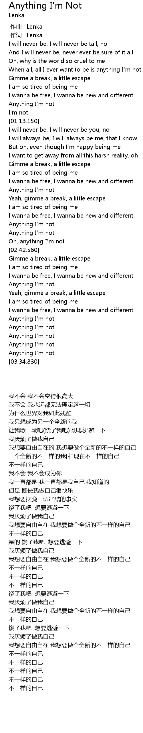 | [03:19.000] | Anything I'm not |