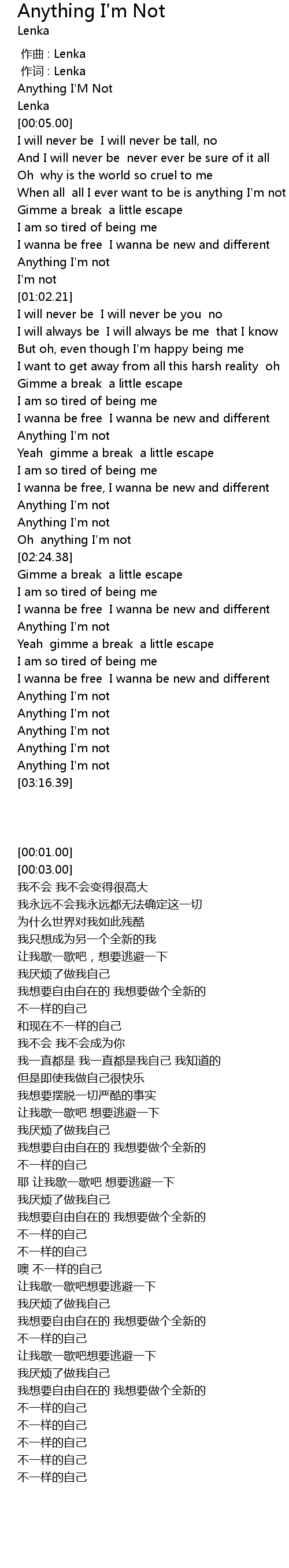 | [00:55.27] | Anything I' m not |