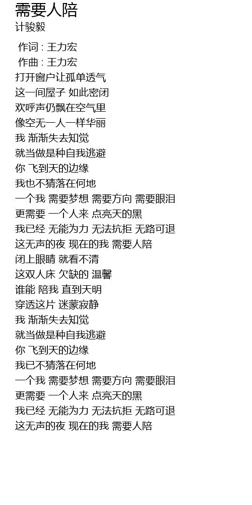 | [02:40.599] | 这无声的夜 现在的我 需要人陪 |