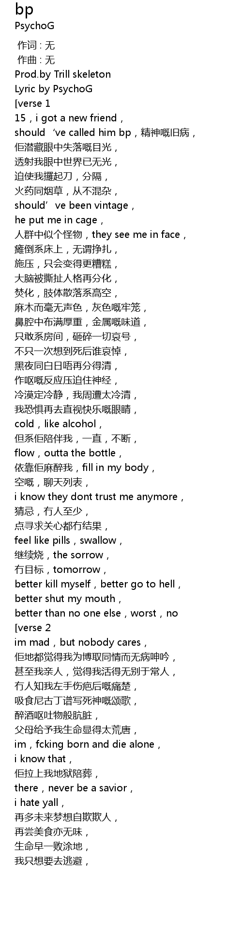 | [00:38.391] | should‘ve called him bp,精神嘅旧病, |