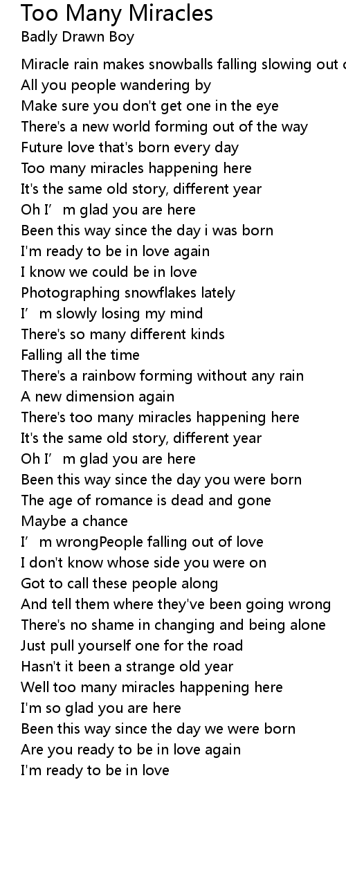 | There' s too many miracles happening here | |