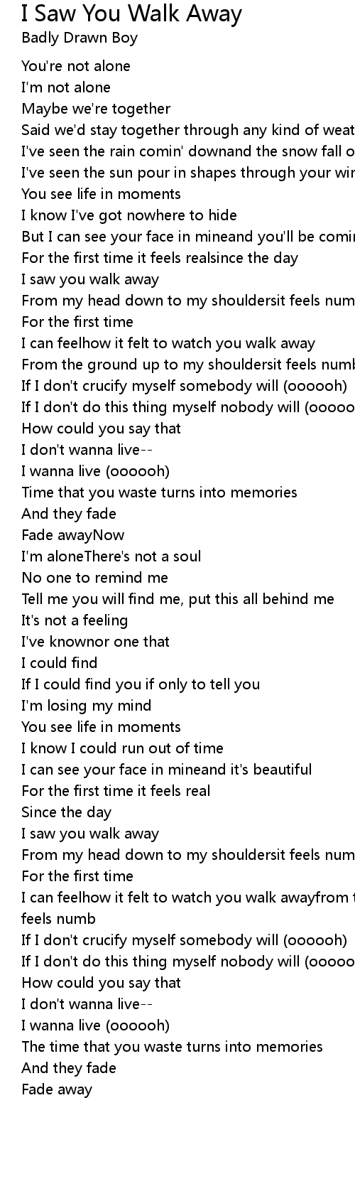 I saw you walk away |