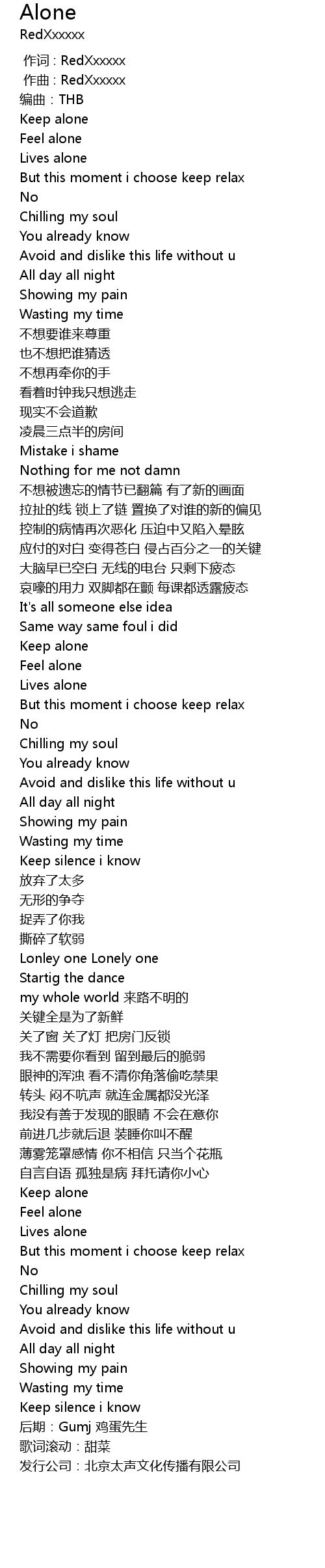 | [00:01.000] | zuò qǔ : RedXxxxxx |