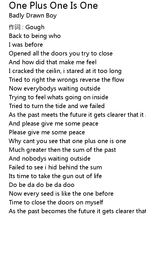 | Song | One Plus One Is One |