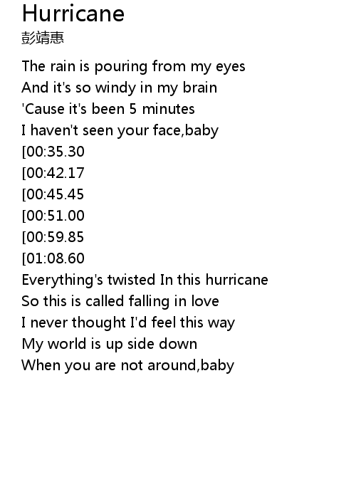 | [02:20.51] | Everything's twisted In this hurricane |