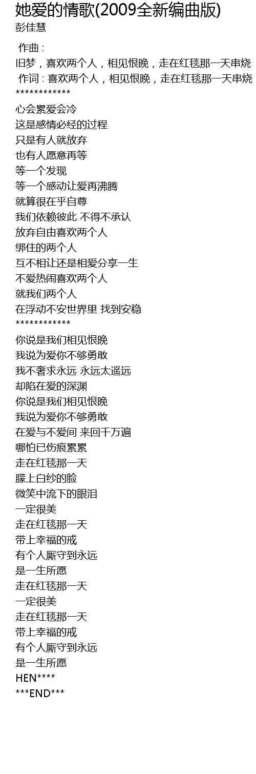 | [00:00.00] | 作曲 : 旧梦,喜欢两个人,相见恨晚,走在红毯那一天串烧 |