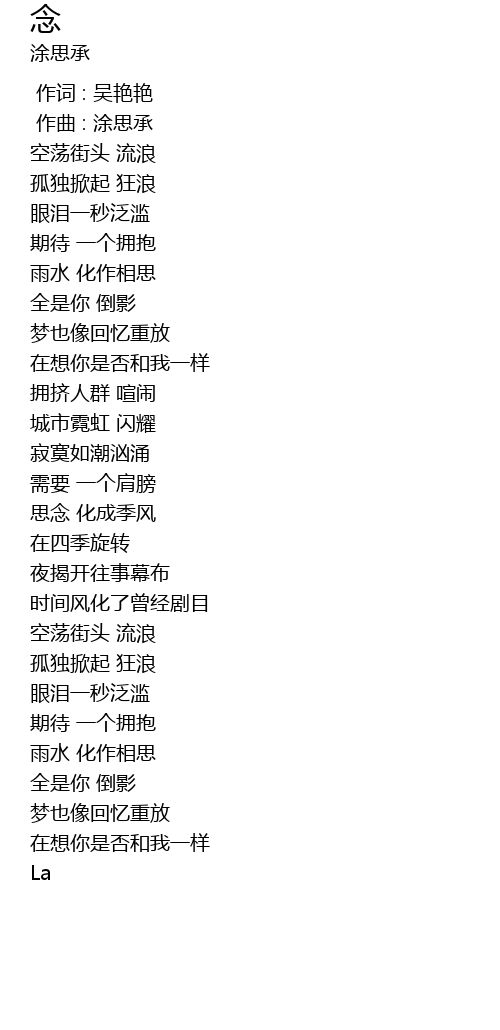 | [00:01.000] | 作曲 : 涂思承 |
