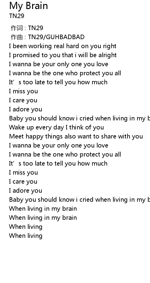 | [01:04.904] | Baby you should know i cried when living in my brain |