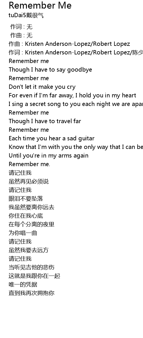 | [00:01.522] | 作词 : Kristen Anderson-Lopez/Robert Lopez/陈少琪 |