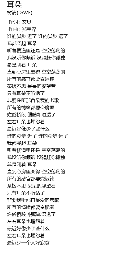 | [00:58.152] | 只有耳朵不听话了 |