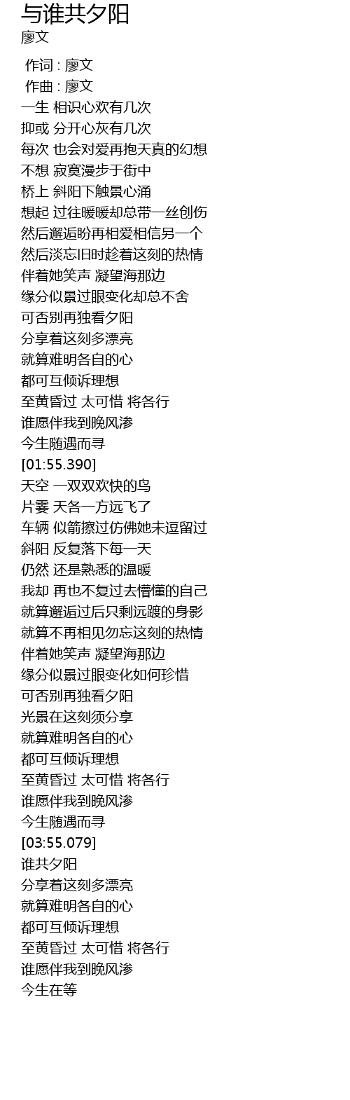 | [01:46.387] | 谁愿伴我到晚风渗 |