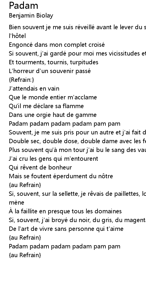 | Si, souvent, sur la sellette, je r vais de paillettes, long est le chemin qui me ne | |