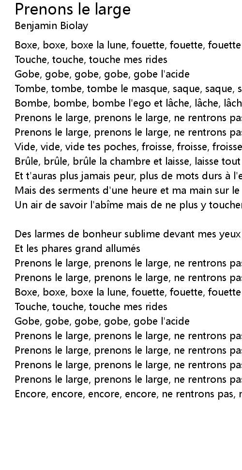| Prenons le large, prenons le large, ne rentrons pas, mon c ur | |