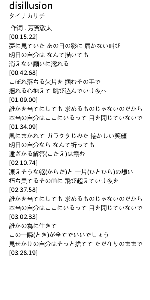 | [00:00.000] | 作词 : 芳賀敬太 |