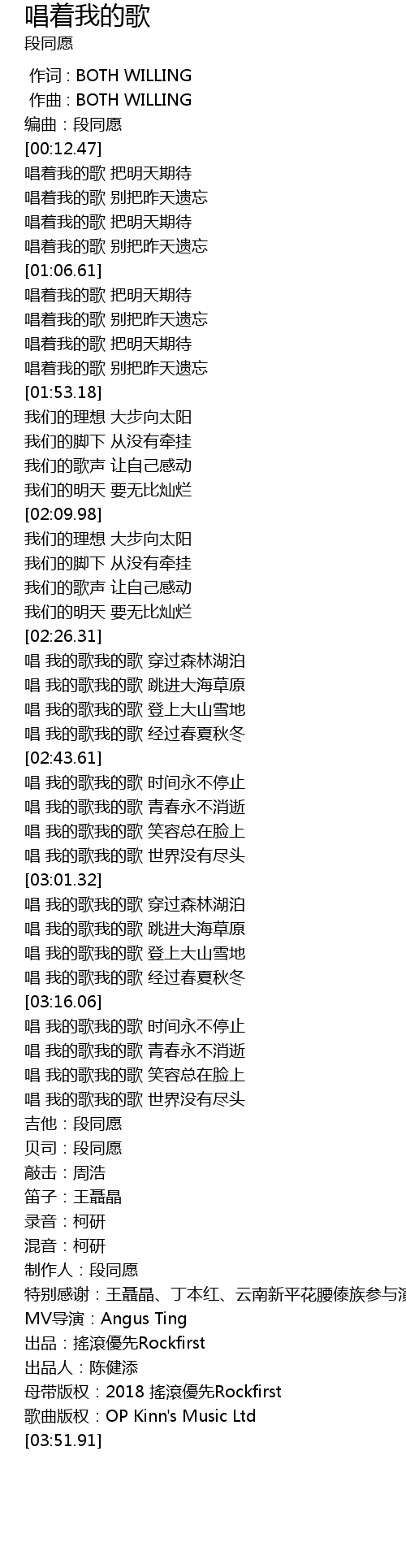 | [00:50.95] | 唱着我的歌 把明天期待 |