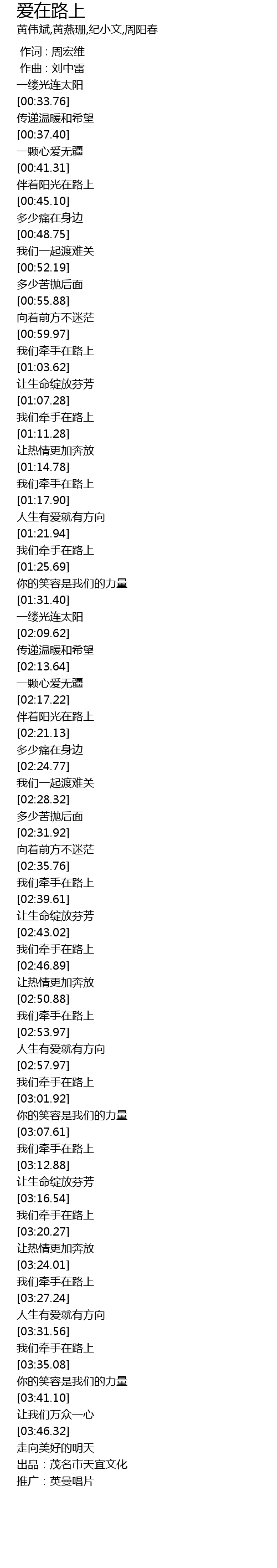 | [00:42.11] | bàn zhe yáng guāng zài lù shàng |