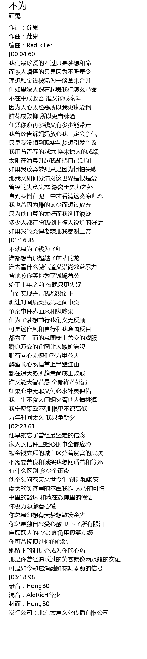 | [03:22.80] | 发行公司:北京太声文化传播有限公司 |