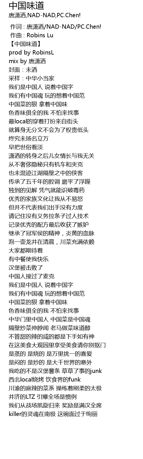 | [01:18.943] | zhōng guó cài de hěn ná zhe zhōng guó wèi |