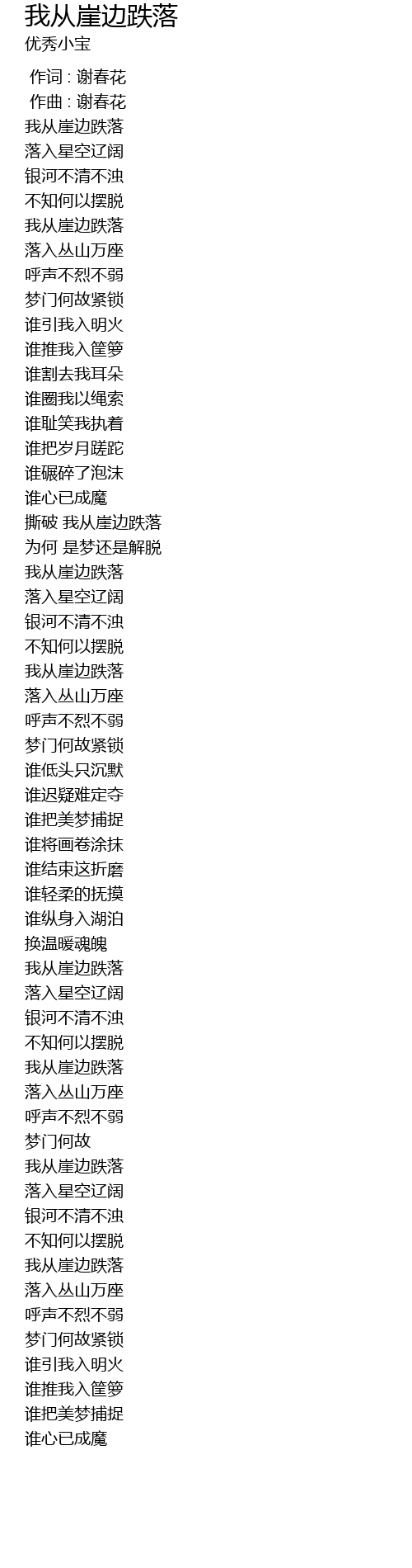 | [00:48.490] | 撕破 我从崖边跌落 |