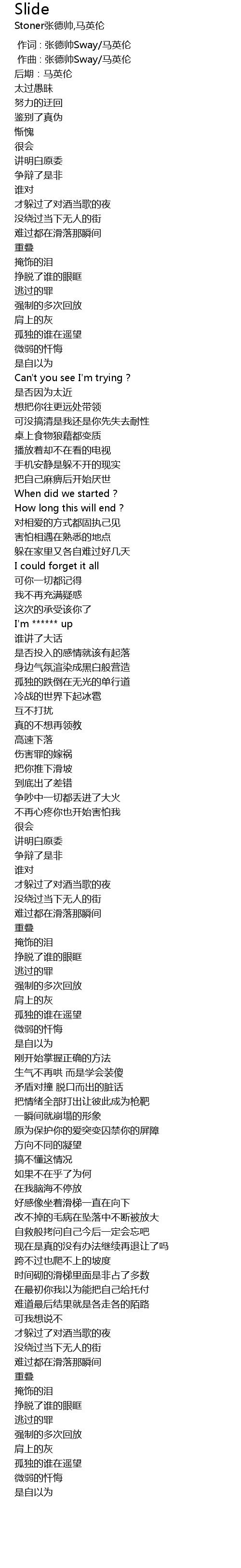 | [00:00.000] | 作词 : 张德帅Sway/马英伦 |