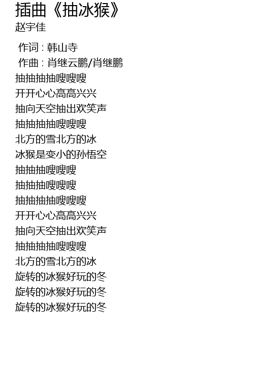| [00:53.726] | 旋转的冰猴好玩的冬 |