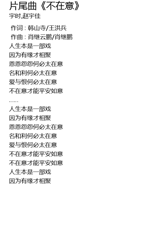 | [00:00.000] | 作词 : 韩山寺/王洪兵 |