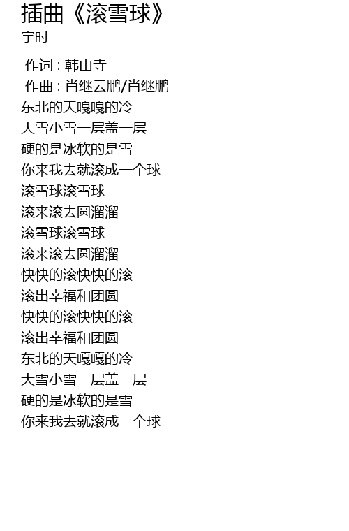 | [00:32.460] | gǔn xuě qiú gǔn xuě qiú |