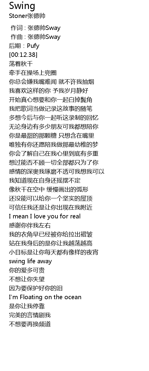 | [00:01.000] | zuo qu : zhang de shuai Sway |