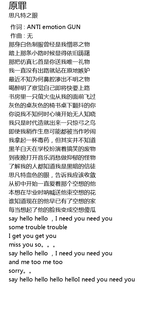 | [00:00.000] | 作词 : ANTI emotion GUN |