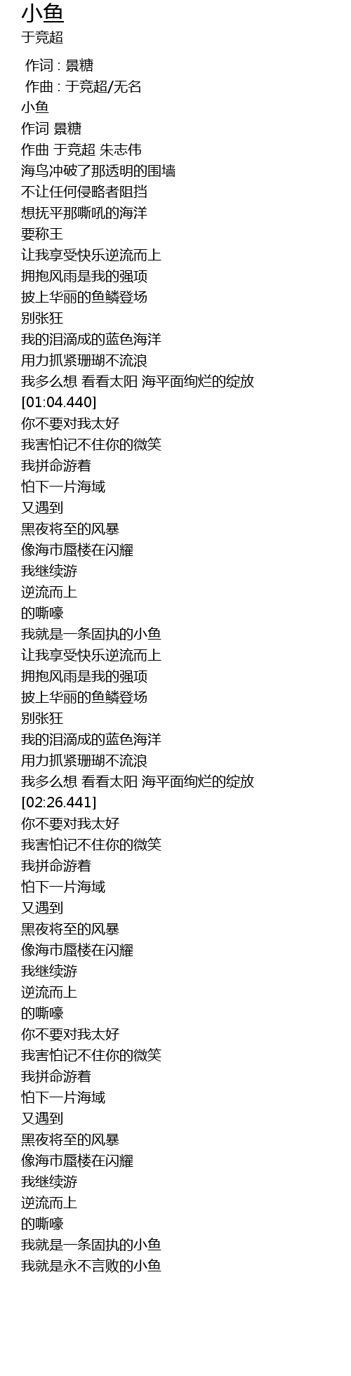 | [01:56.198] | 我就是一条固执的小鱼 |