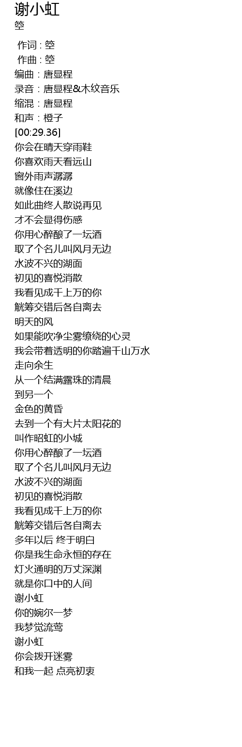 | [00:18.80] | 录音:唐显程&木纹音乐 |
