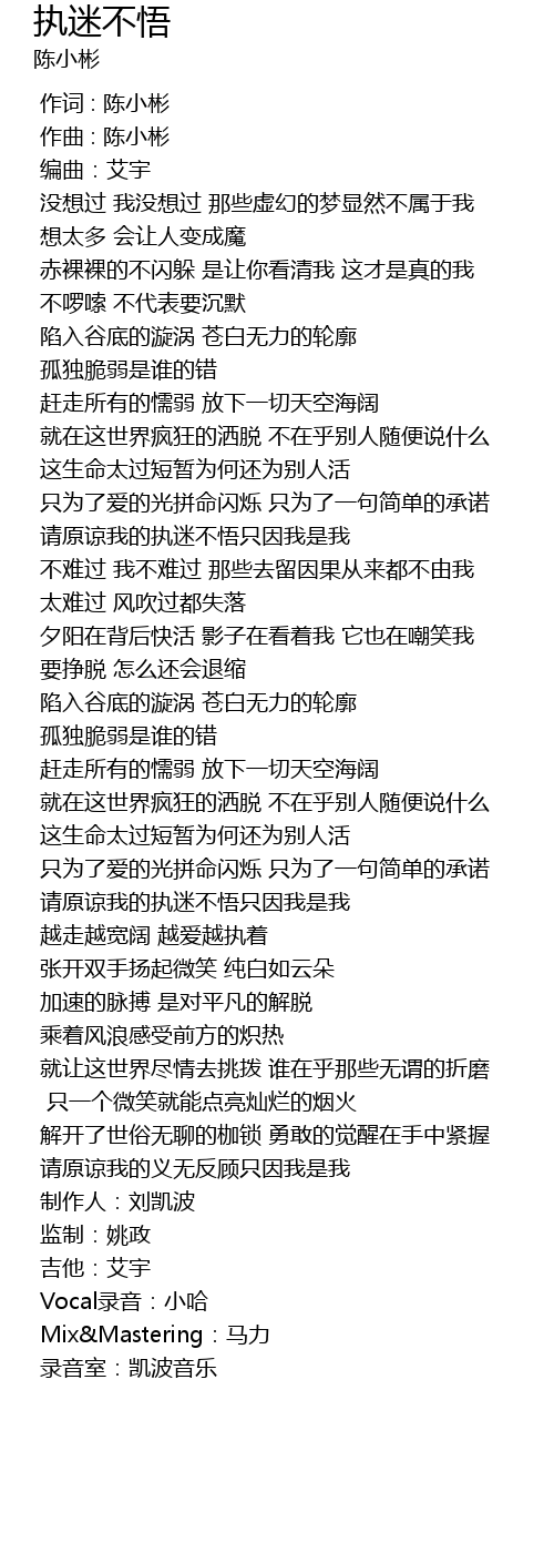 | [00:00.000] | 作词 : 陈小彬 |