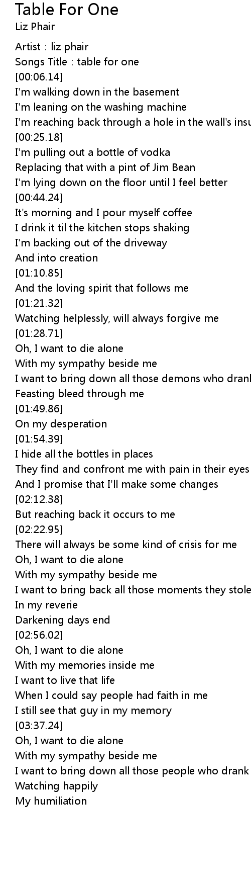 | [00:03.31] | Songs Title: table for one |
