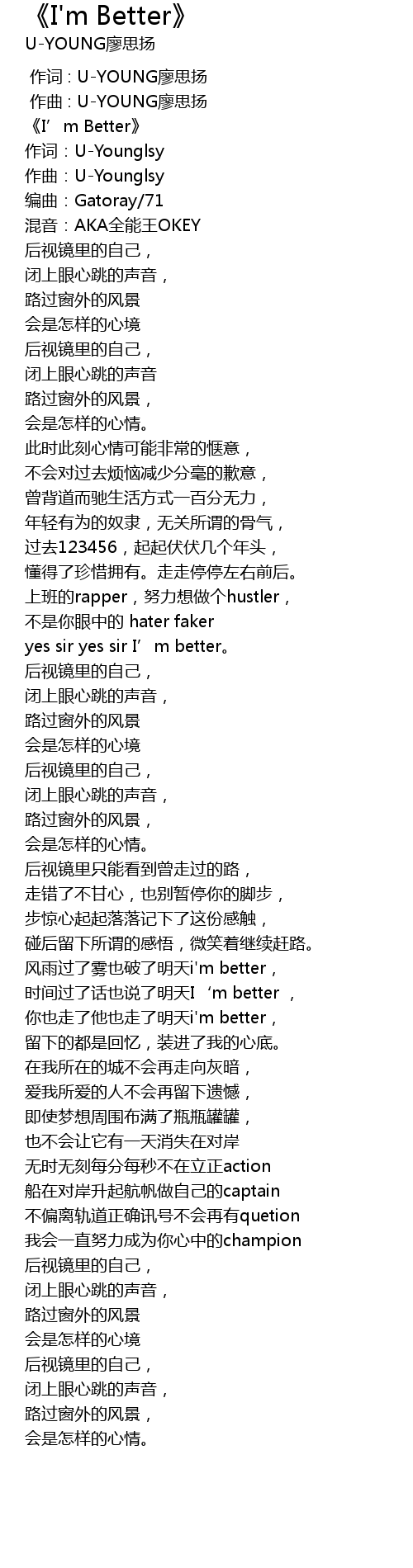 | [00:00.000] | 作词 : U-YOUNG廖思扬 |