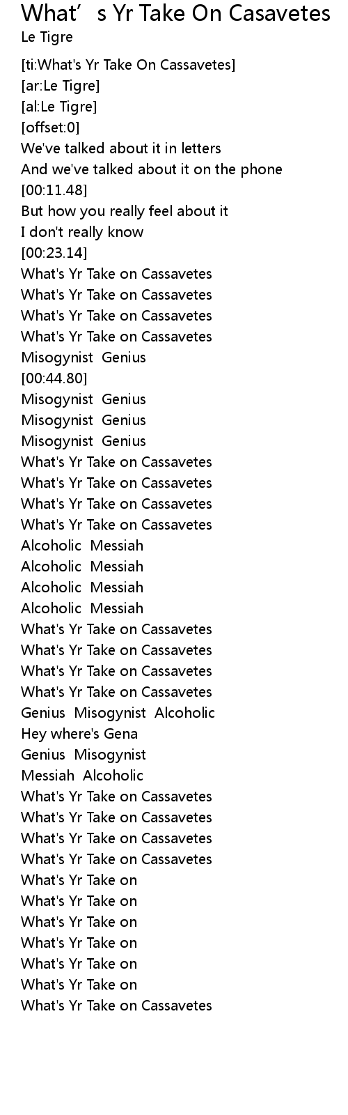 | [01:01.01] | What's Yr Take on Cassavetes |