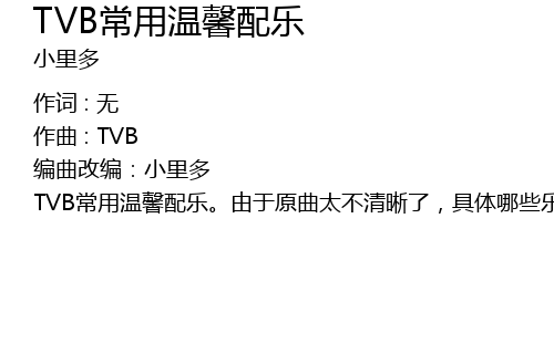 | TVB chang yong wen xin pei yue. you yu yuan qu tai bu qing xi le, ju ti nei xie yue qi nan zhi xi. gai bian yong le ruan yang qin fan zhu dian gang qin xian yue zu ni long ji ta ai er lan di. |