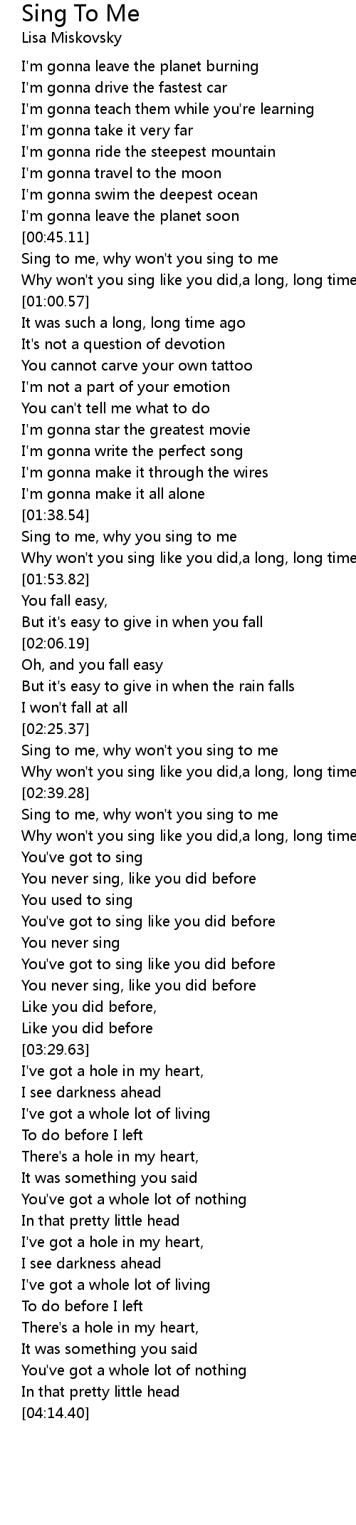Sing to me, why you sing to me |