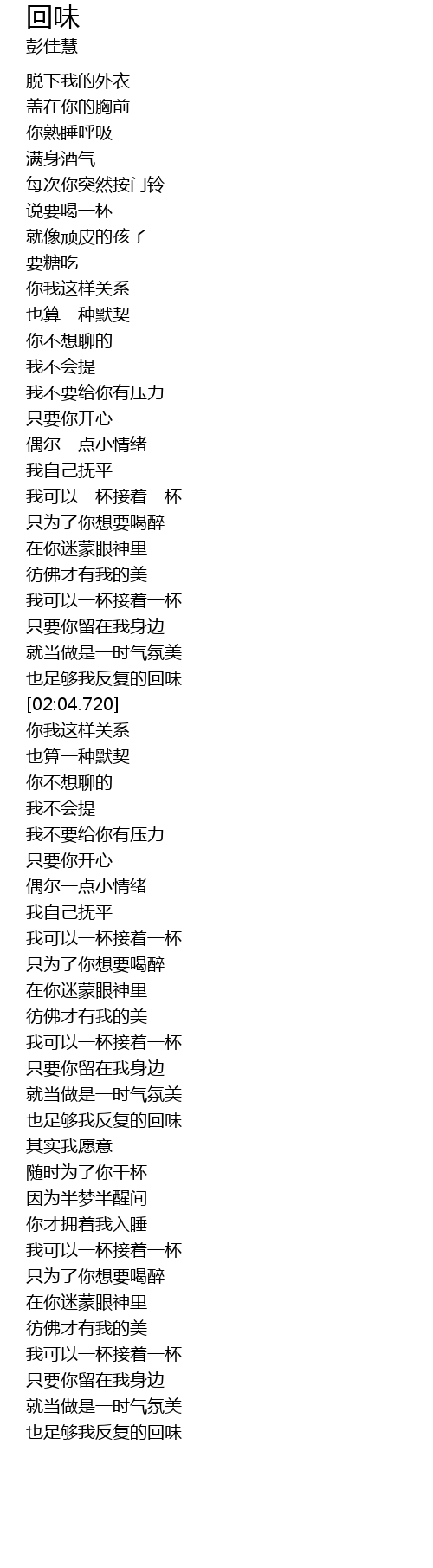 | [04:31.280] | yě zú gòu wǒ fǎn fù de huí wèi |