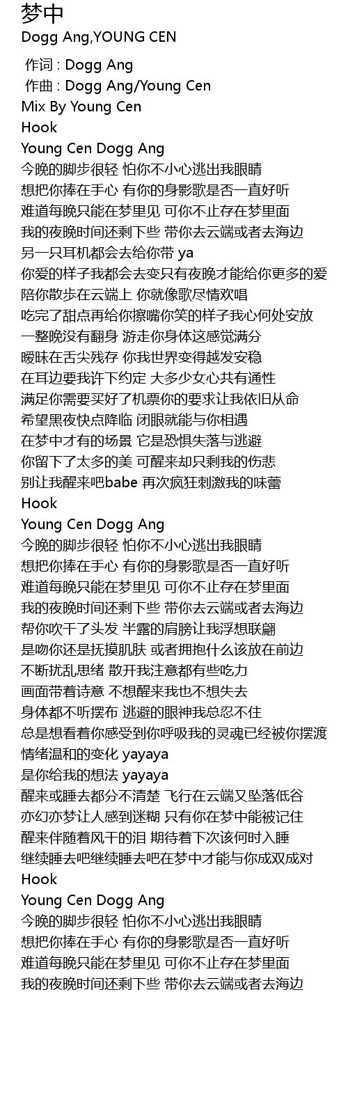 | [00:00.346] | 作曲 : Dogg Ang/Young Cen |