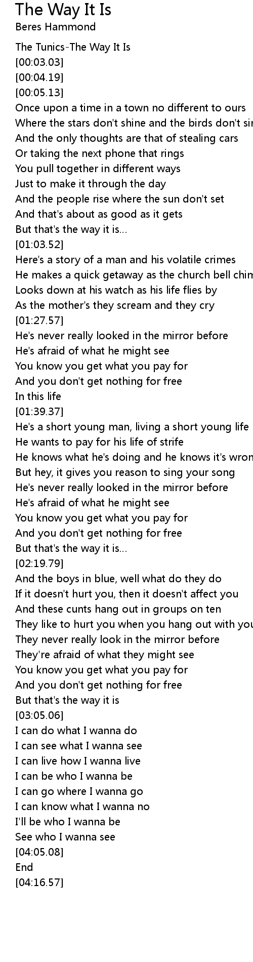 | [00:00.87] | The Tunics-The Way It Is |