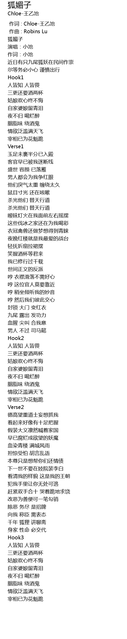| [00:01.303] | 狐媚子 |