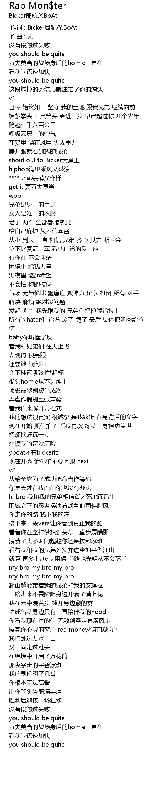 | [00:00.000] | 作词 : Bicker周航/Y.BoAt |