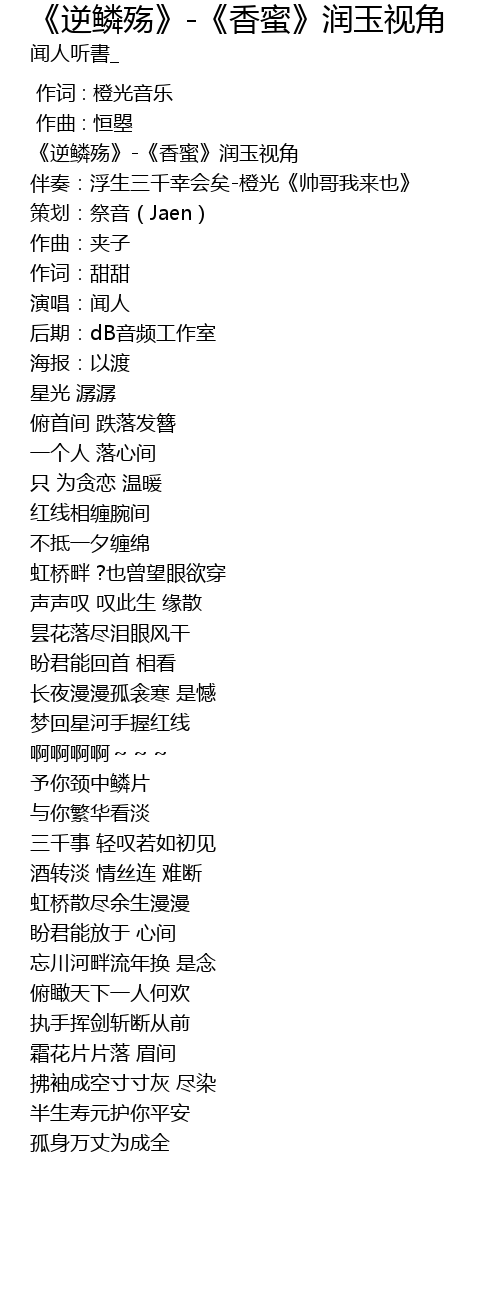 | Song | 《逆鳞殇》-《香蜜》润玉视角 |